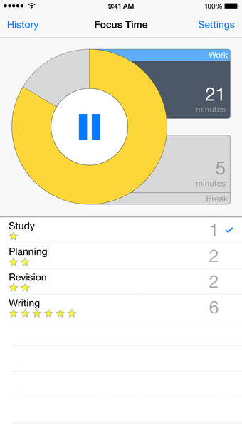 Focus Time Activity Tracker is een handige timerapp die is ontworpen voor iPhone-gebruikers die hun productiviteit willen verhogen. Deze app maakt gebruik van de Pomodoro-techniek, waarbij je in blokken van 25 minuten werkt, gevolgd door korte pauzes van 5 minuten. Dit helpt gebruikers om afleiding te minimaliseren en zich beter op hun taken te concentreren. Bovendien biedt de app statistieken over voltooide sessies en een grafiek die laat zien hoe je je tijd besteedt.